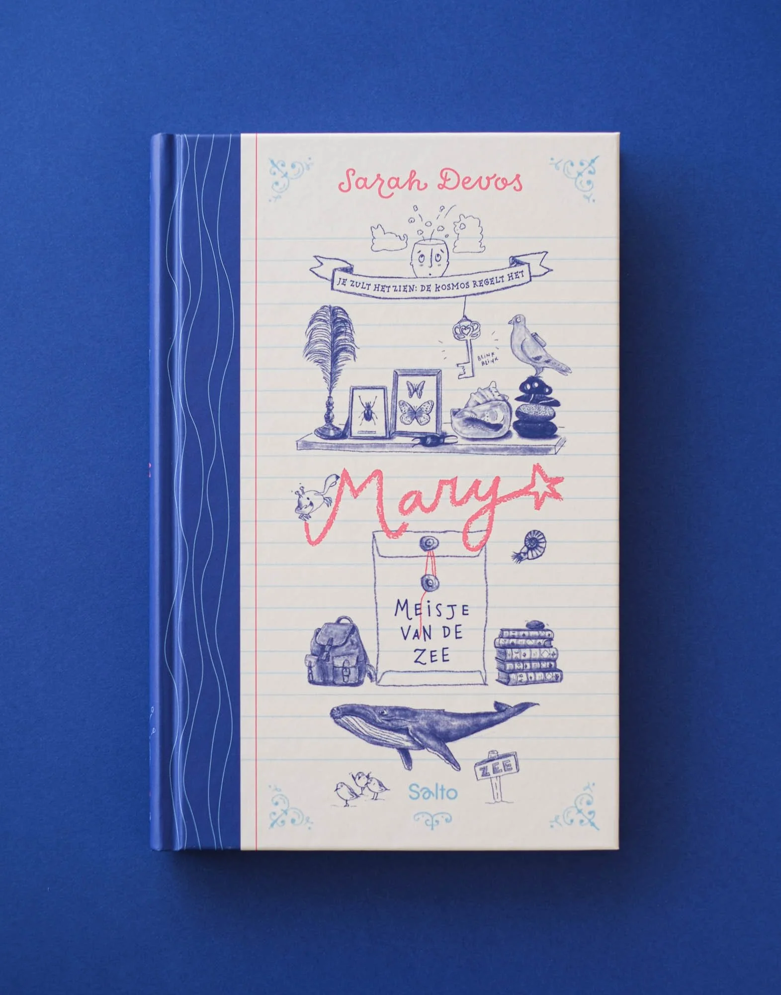 Voor de cover van Mary, meisje van de zee ontwierp ik een collage op basis van illustraties van Sarah Devos en elementen uit het verhaal. Een boek vol verwondering vroeg om een omslag die even speels als gelaagd aanvoelt. De compositie verwijst naar Mary’s wereld aan zee, haar dromen en de sporen van haar opa die ze probeert te volgen.